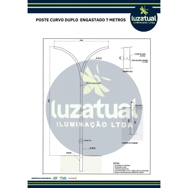 Informações do produto: POSTE CURVO DUPLO ENGASTADO 7 METROS
