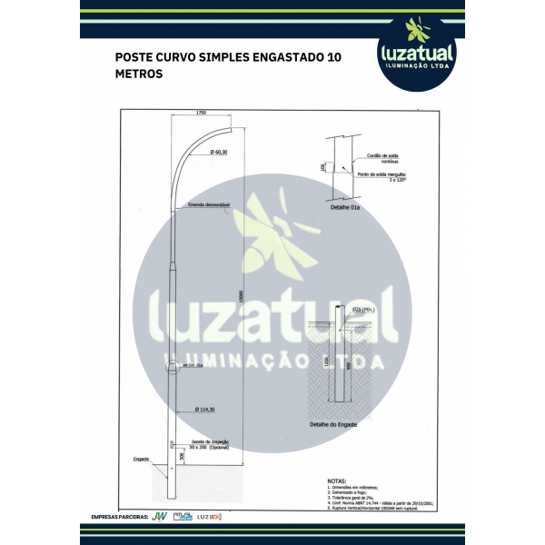 Informações do produto: POSTE CURVO SIMPLES ENGASTADO 10 METROS