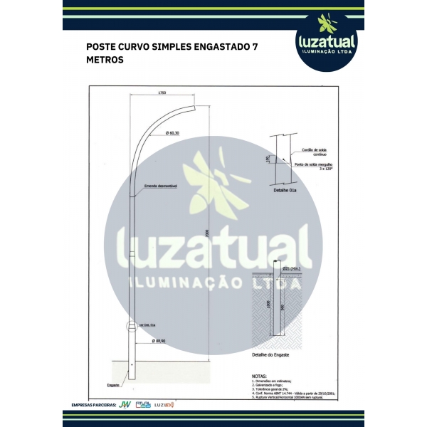 Informações do produto: POSTE CURVO SIMPLES ENGASTADO 7 METROS