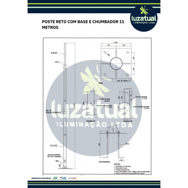 Informações do produto: POSTE RETO BASE E CHUMBADOR 11 METROS