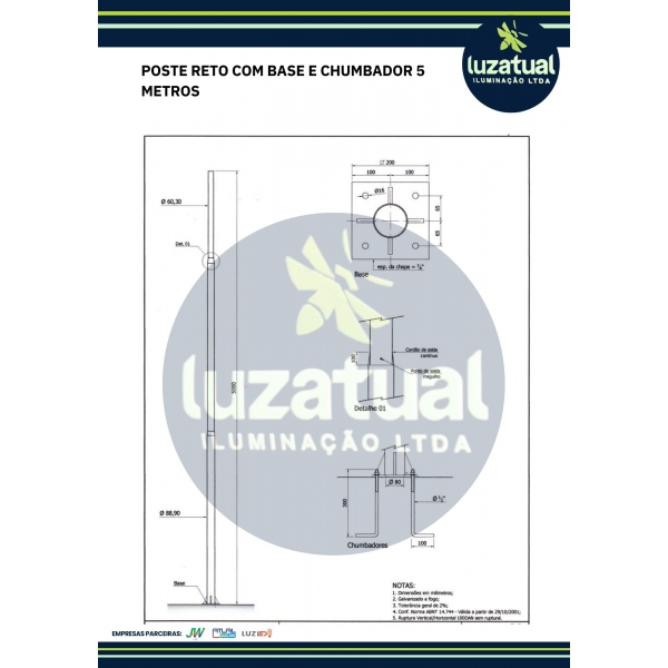 Informações do produto: POSTE RETO BASE E CHUMBADOR 5 METROS